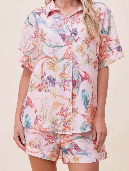 Oh-so soft and breathable, this two-piece PJ set has a relaxed, button-down top with easygoing boxer-style shorts with an elastic waistband.