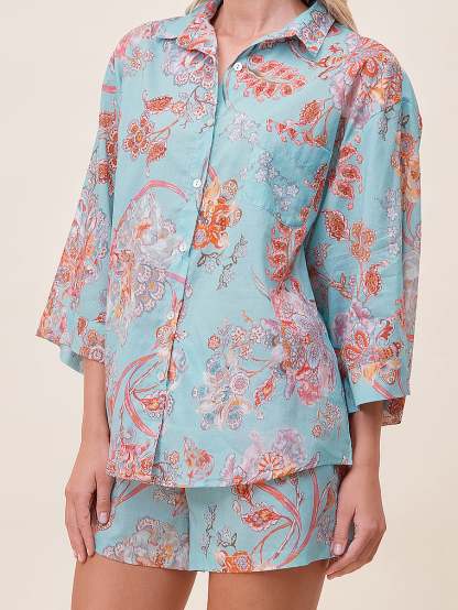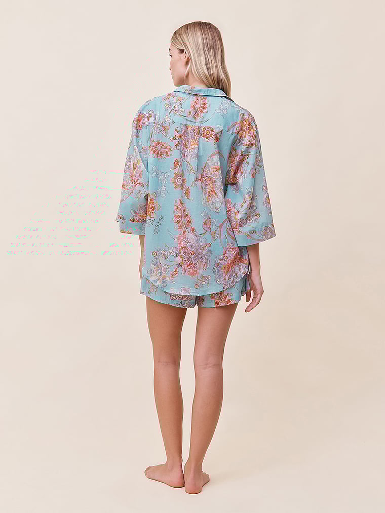 Silky soft, lightweight, and breathable, this two-piece set has a charming allover print and plenty of flair.