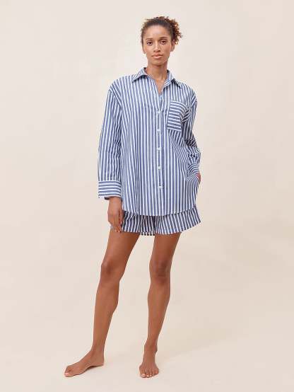 Papinelle Cotton Stripe Shirting Boxer Pajama Set