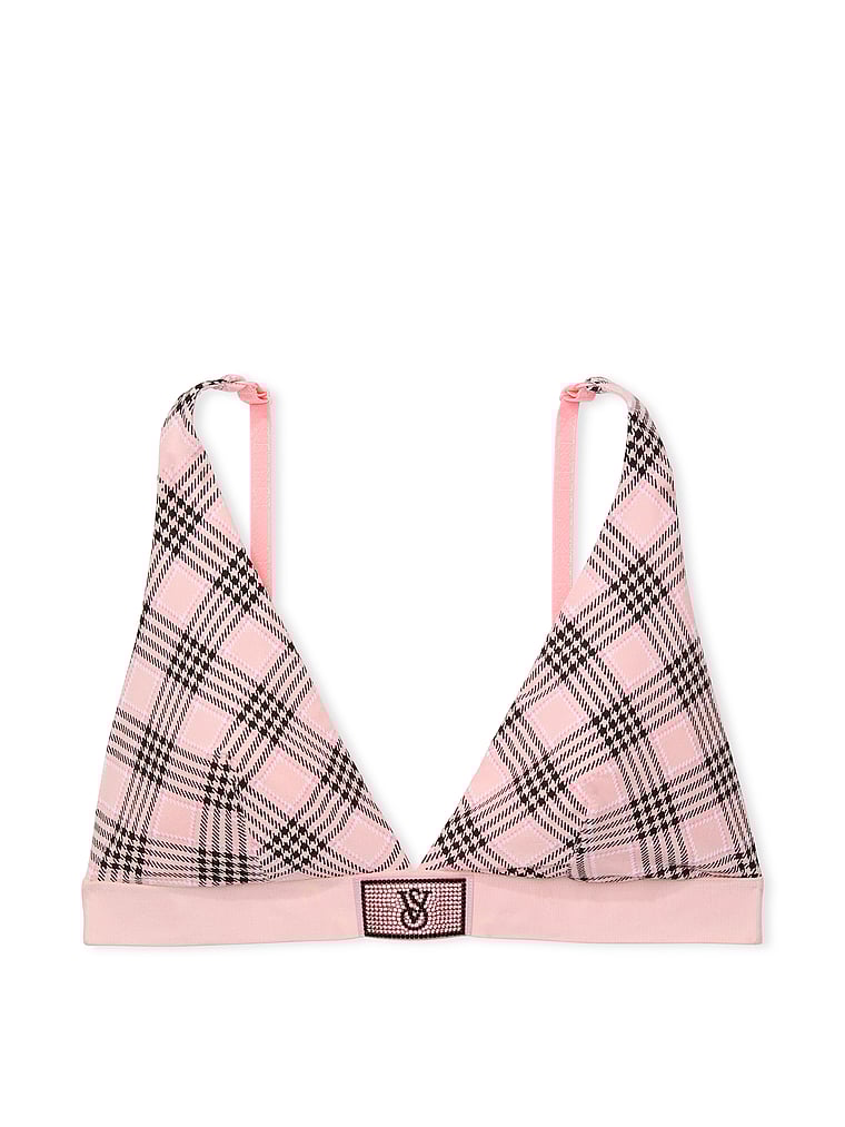This simplified, wireless design features a plunging neckline and our glittering rhinestone logo patch for a sexy, easy-wear style.