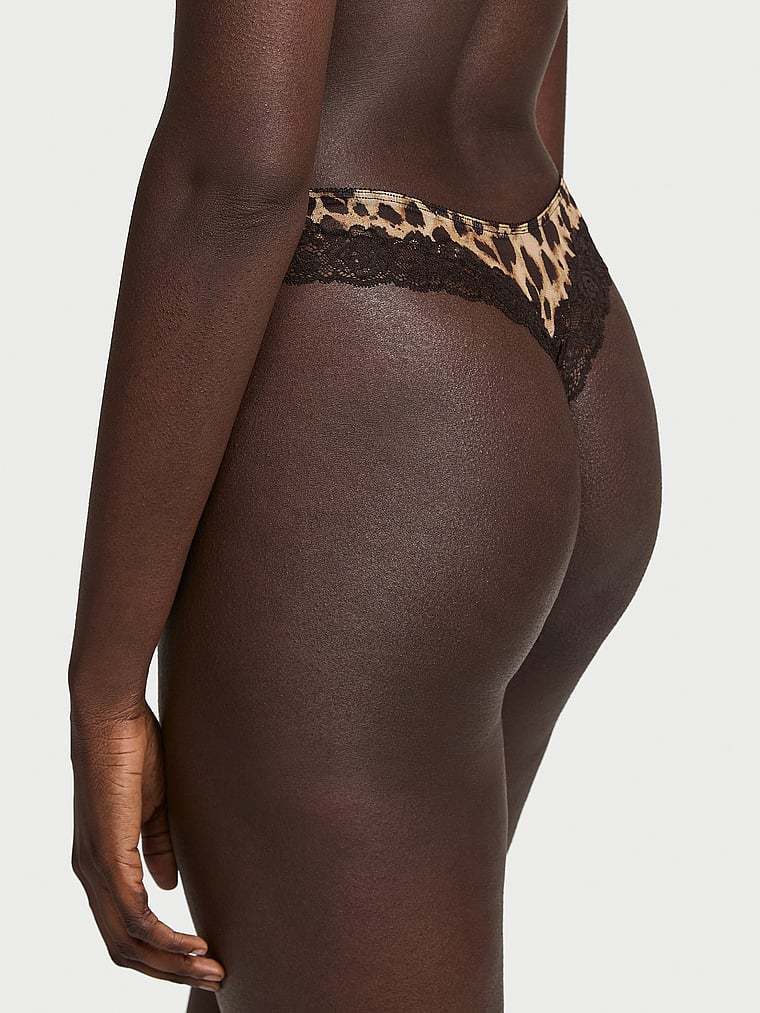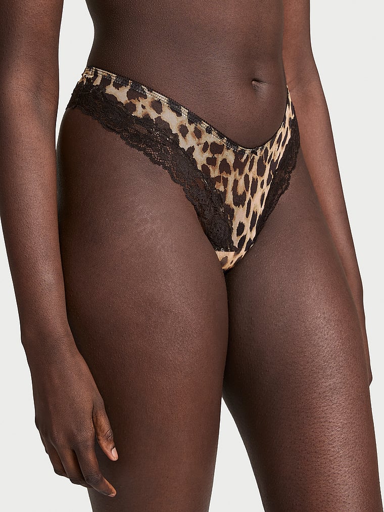 Sheer mesh is paired with luxe lace on this sexy Thong, featuring a flattering high-cut leg and dipped front.