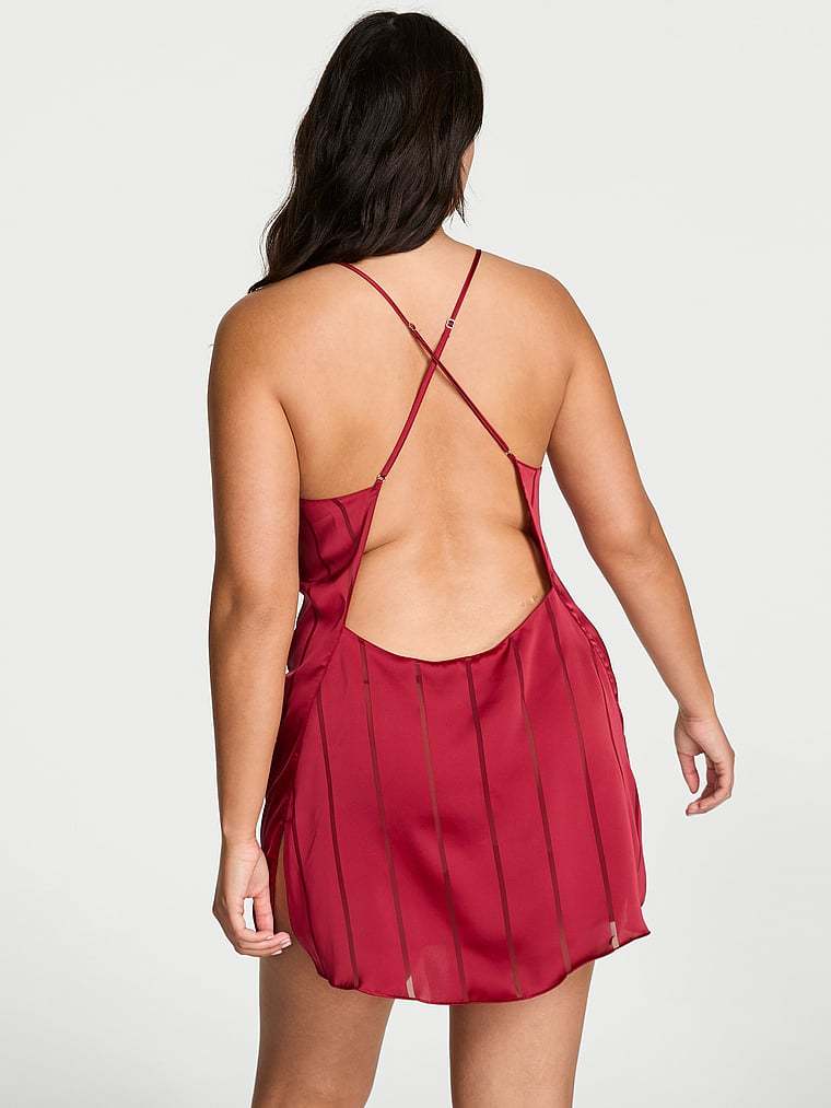 Victoria's Secret Satin Sheer Stripe Open-Back Slip Dress