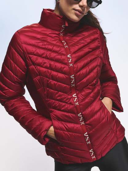 Defined by its cool chevron pattern, this lightweight puffer provides cozy warmth, perfect for every day. The smart, packable design means you don't have to lug around your Jacket when you get to your destination. Simply fold it up into the included carrying case and you've got a hands-free, cold-weather solution with sporty VSX style.
